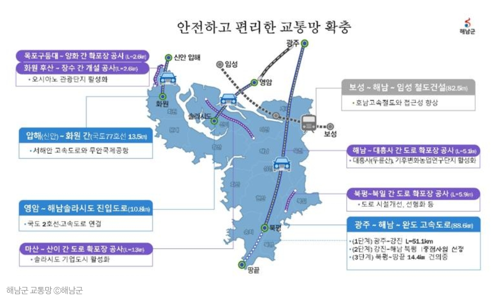 - “교통 불모지는 이제 옛말… 해남 SOC 개발 속도”